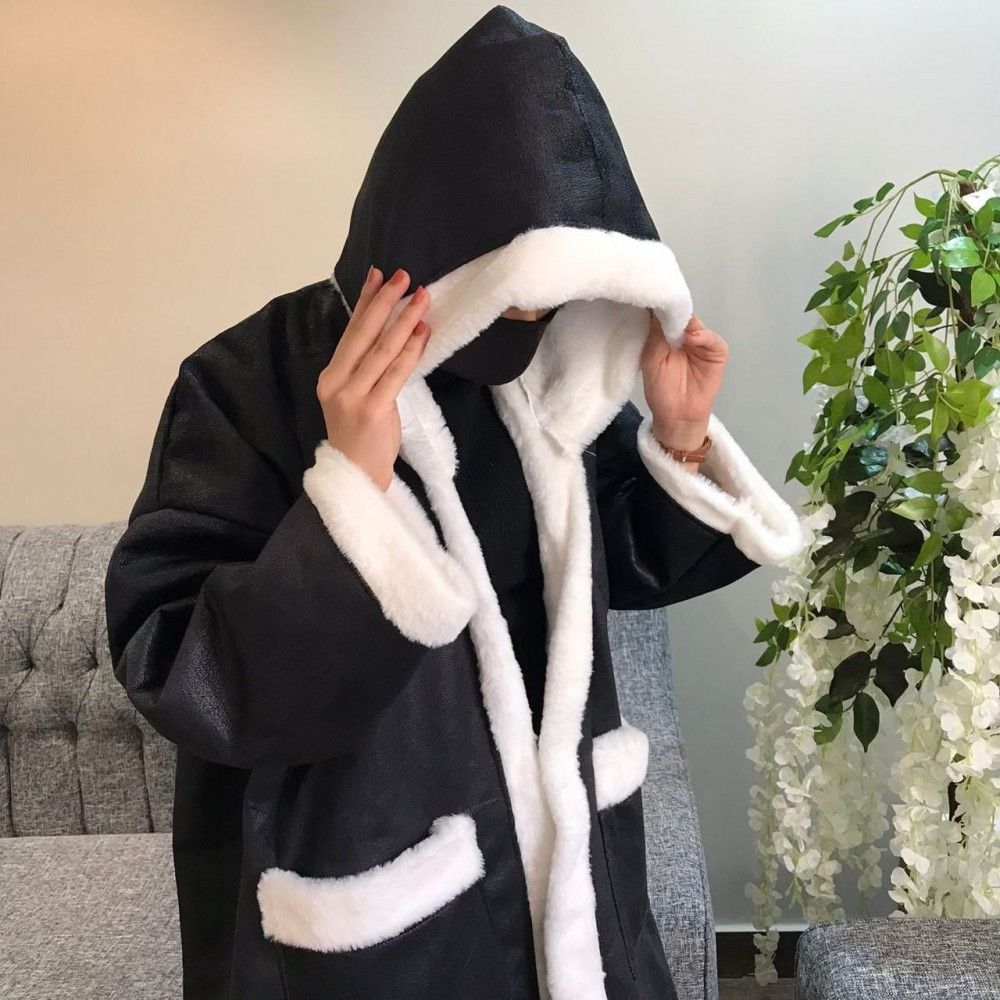 فروة شتوية أنيقة ودافئة مصنوعة من أفخم أنواع الفرو والقماش الصوف المقاس من 50 حتى 60